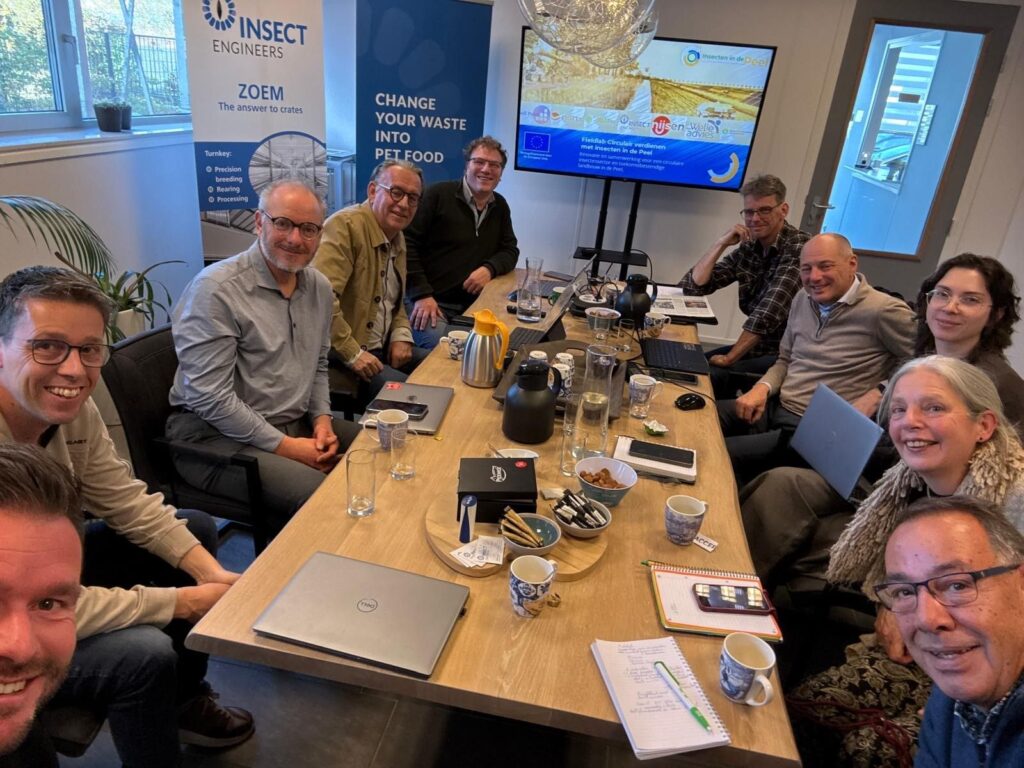 - Stuurgroep Fieldlab Circulair Verdienen met Insecten in de Peel te gast bij Insect EngineersDe stuurgroep van het Fieldlab Circulair Verdienen met Insecten in de Peel vergaderde bij Insect Engineers in Horst. Tijdens de bijeenkomst werden de lopende onderzoeken besproken en het concept programma van eisen voor het praktijkinnovatiecentrum vastgesteld. Hiermee zet het fieldlab een belangrijke stap richting regionale ketenontwikkeling en verdere professionalisering van de insectensector.